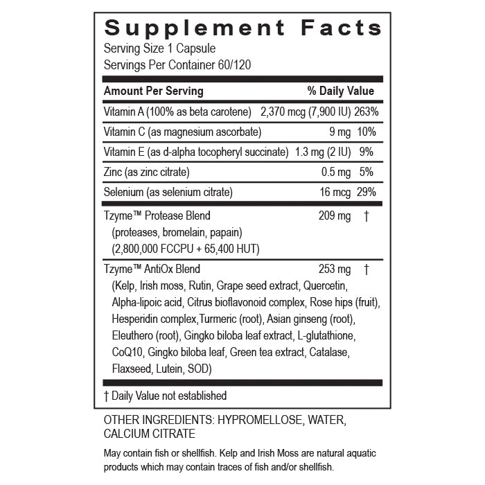 - Antioxidant Support: This formula contains the antioxidants Vitamin A, Vitamin C, Vitamin E, Zinc, and Selenium. Also includes a comprehensive AntiOx™ blend to scavenge and correct oxidized molecules, helping prevent free radical damage in the body.