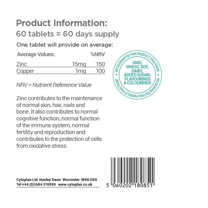 Food State Zinc is combined with copper to prevent a possible risk of copper deficiency during long-term usage.