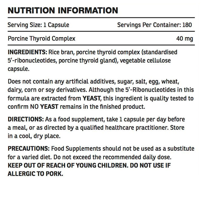 - Nothing is removed. Just raw, premium quality whole porcine thyroid glands, processed at low temperatures to preserve their full nutritional value.